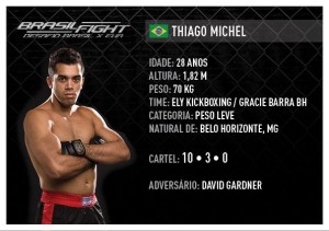 Menos de uma semana após os últimos combates, Thiago Michel está novamente em posição de guarda. Desta vez o confronto será de MMA no cage do Brasil Fight, que acontece nesta sexta-feira (21/09), na Arena Vivo do Minas Tênis Clube, na capital mineira. As lutas começarão a partir das 20 horas.
